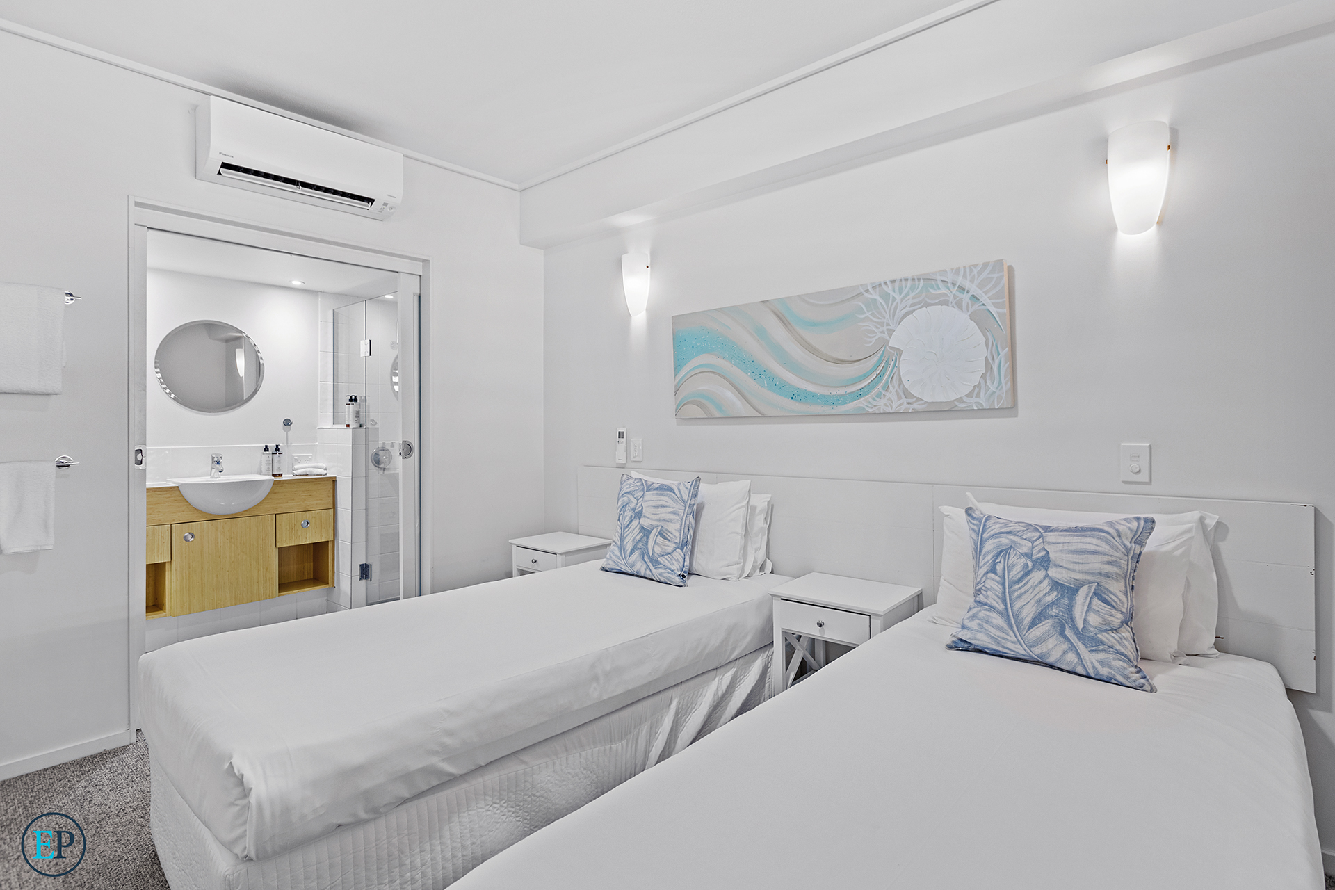 This fully air-conditioned apartment features two spacious bedrooms, both with private ensuites. The master bedroom includes a spa bath and direct access to the balcony, where you can relax and enjoy the ocean breeze and spectacular views.